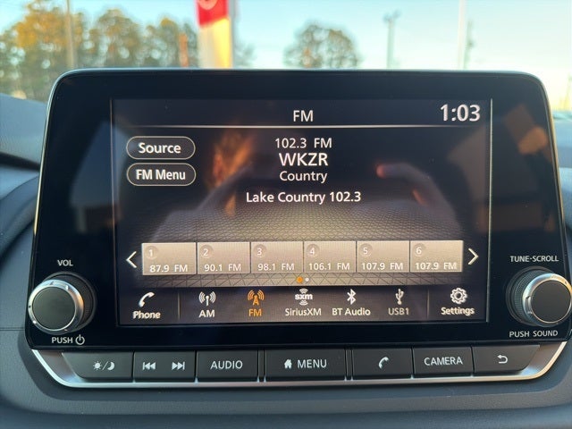- Radio: AM/FM NissanConnect -inc: 6 speakers plus 2 tweeters, Apple CarPlay, Android Auto, 8" color touch screen display, Bluetooth®, 2 front USB type-C, Wi-Fi hotspot and NissanConnect Services powered by SiriusXM